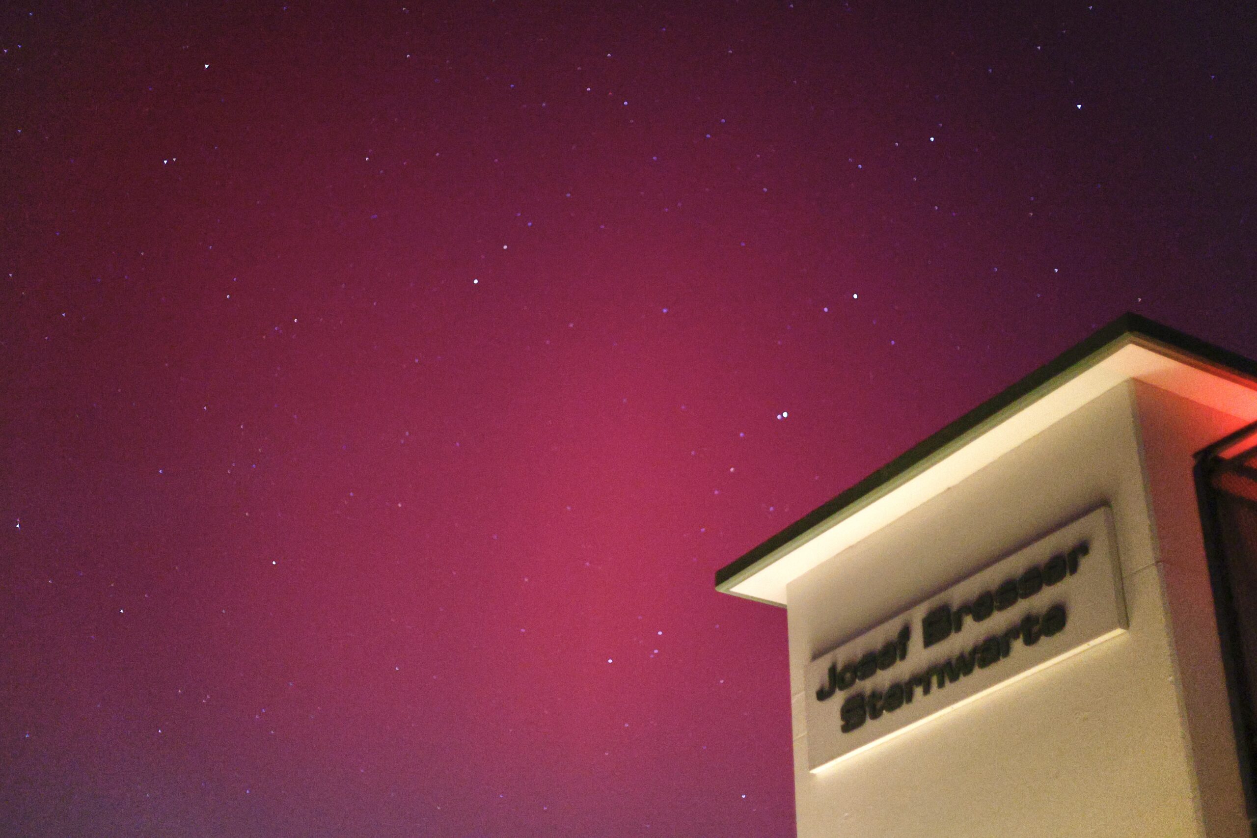 Auch an einsamen Orten ist man ja nicht allein. Über den Polarlichtchat der Meteoros-Gruppe und der Sternfreundegruppe spürte man die Begeisterung anderer Sternfreunde. An der Sternwarte waren auch einige Beobachter. So ist das in der digitalen Welt. Man steht im Austausch mit vielen Anderen. Gegen Mitternacht ließ die Aktivität dann nach . Sie war immer noch sehr hoch, aber weil der folgende Tag ein Dienstag war und der nicht arbeitsfrei war, brach ich gegen halb 1 ab. Meine Akkureserven waren auch pünktlich erschöpft. Die Objektive musst ich zwei,drei Mal mit der Autoheizung trocknen.